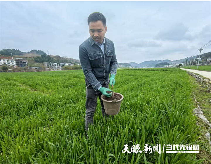 离开草莓基地,记者沿着乡间小路前行,不一会儿就来到了小麦种植基地。春风拂过,麦田泛起层层绿浪。这里的有机小麦高产栽培示范点占地1000亩,主要种植黔麦22号,通过实施“小麦优质品种+机械播种+合理密植+科学施肥+一喷三防+机防机收机烘”的技术模式,实现单产较非示范区提高5%以上目标。