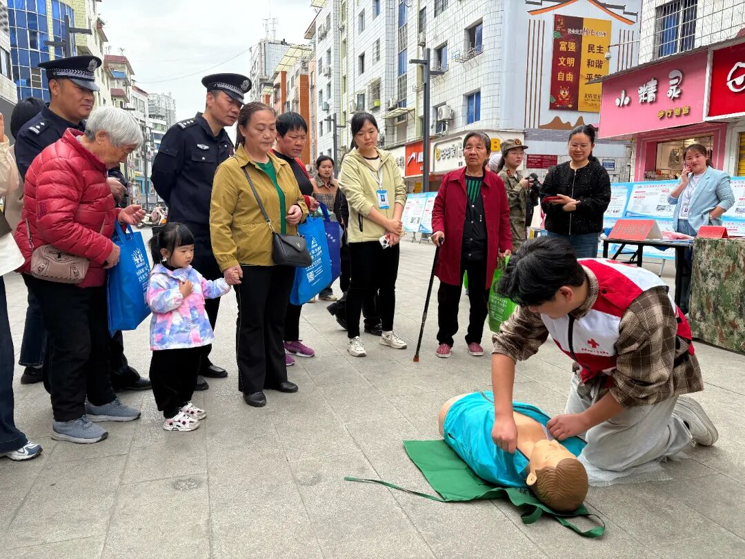 同时,工作人员还为市民讲解了心跳骤停急救知识要点,讲述心肺复苏流程,并通过现场模拟演示心肺复苏及海姆立克急救法的操作流程,帮助现场群众掌握常见急救情况的处理方法与原则。