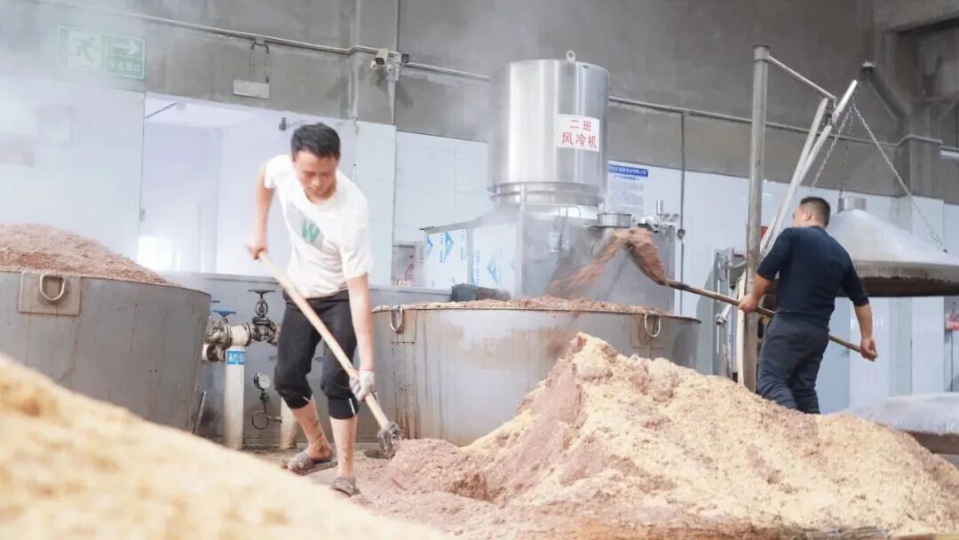 贵州云强酱酒业有限公司负责人时安进介绍:“目前我们正进行2025至2026生产年度第一轮次‘下沙’。高粱的破碎率有3%、10%,严格按照粮食比例执行,发酵效果很充分,整体情况良好。”