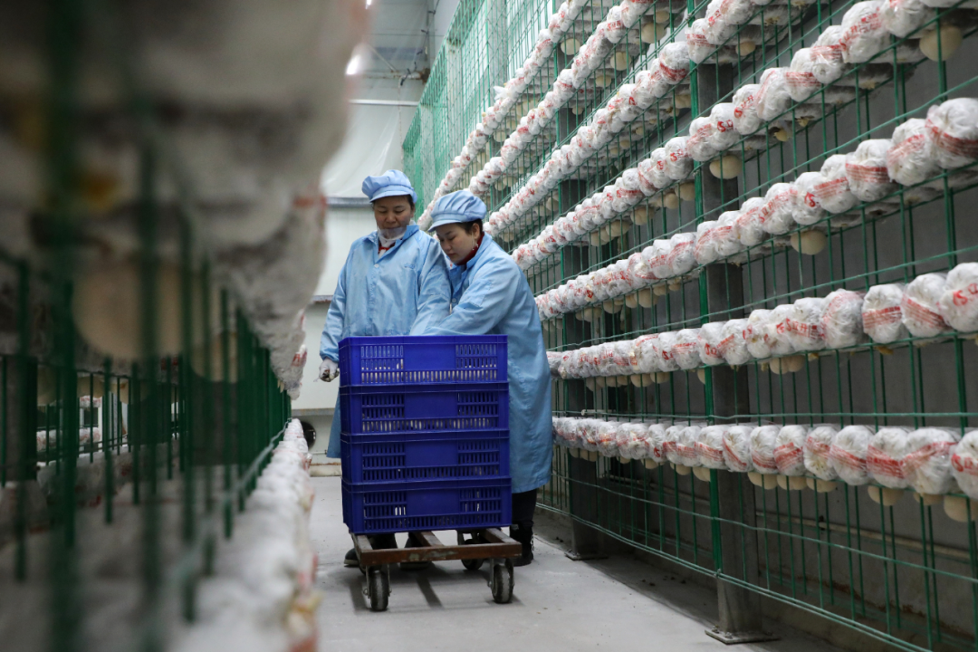 走进育菇车间,一排排菌棒整齐悬挂,温湿度传感器实时采集数据,自动调控系统精准运行。与传统种植“靠天吃饭”不同,这里的每一朵蘑菇都享受着“顶级待遇”。